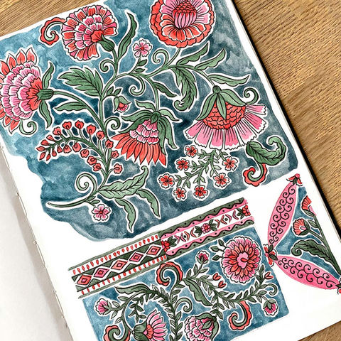 My design handwriting is diverse, with experience across men’s, women’s and childrenswear, as well as soft accessories, activewear, swimwear, sleepwear and homeware. I have sold designs to brands worldwide and am known for my love of hand-drawing and painting in a range of mediums. My favourite styles to create include elegant florals, decorative paisleys and playful conversational prints.